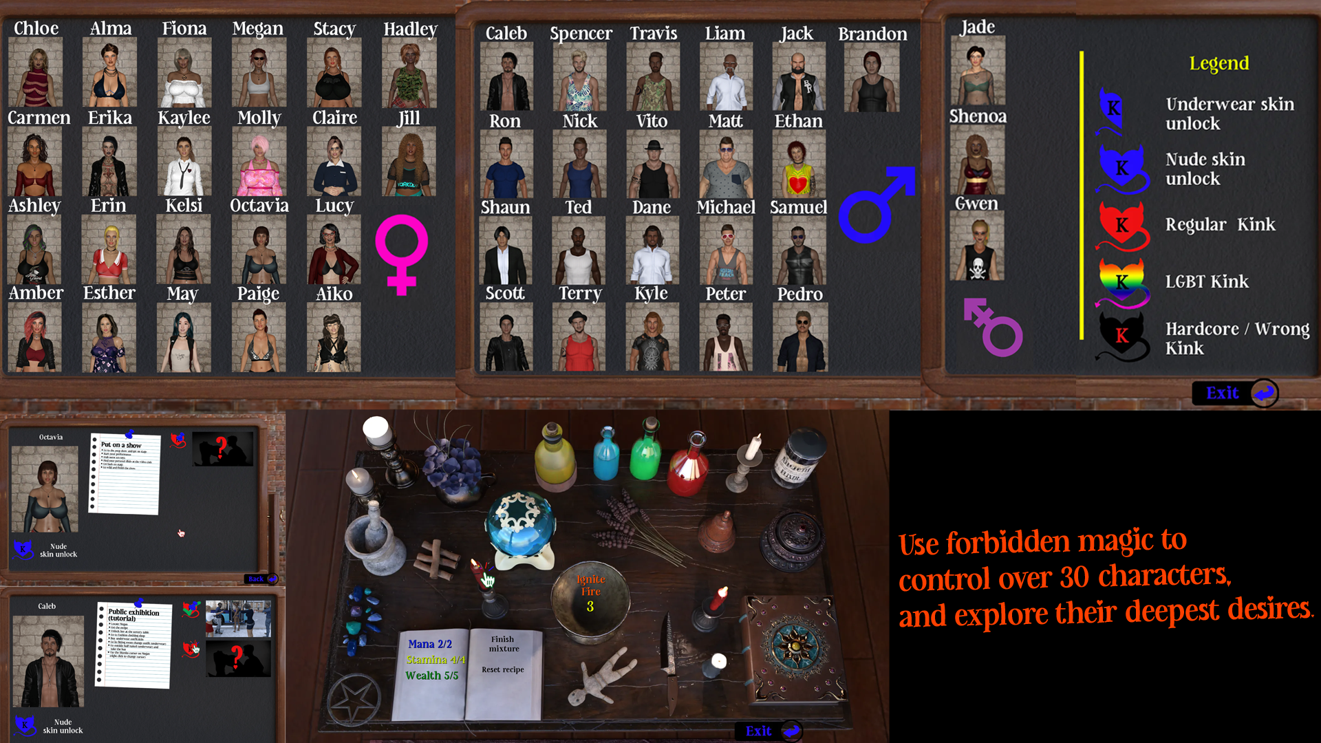 In Kink Maker, you don’t just guide characters, you possess them. Use forbidden magic to control their minds and bodies, solve puzzles, and fulfill their wildest desires.